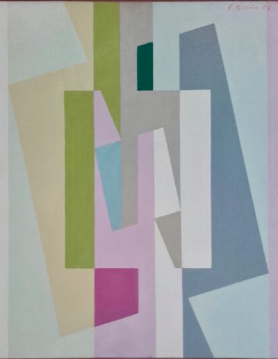 This is an art that is intellectual, sensitive, free, and learned all at once, a form of abstract painting that does not betray the specific laws of the medium, and, between the rigour of the conception and the unforeseen in the execution, strikes the right balance. Neither the austerity of a working drawing, nor the sadness of a pensum is found here. These compositions move, quiver, are alive to the reciprocal actions of their lines and their colours…