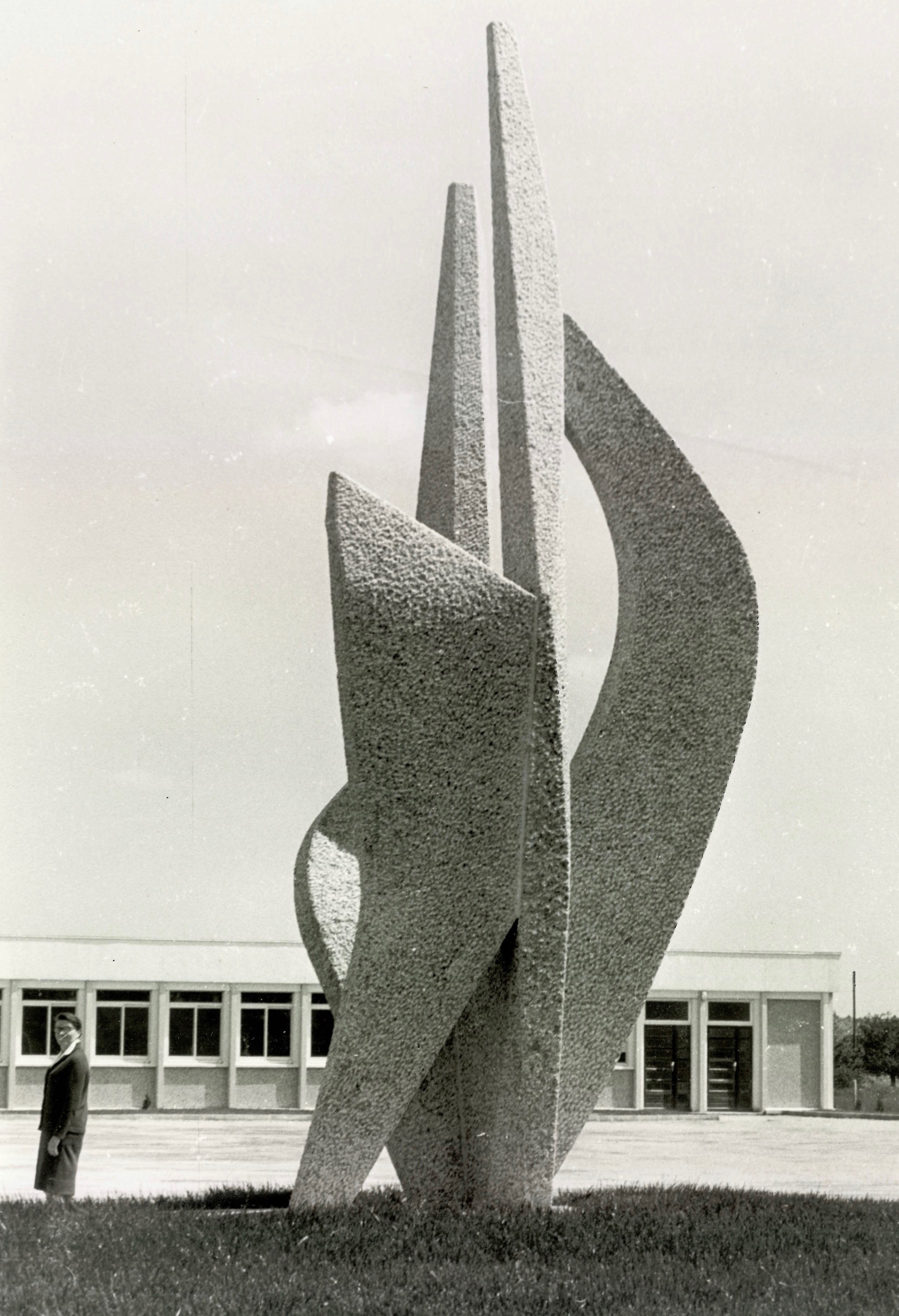 Sculpture in the round, granite, 1971, Lycée Technique Polyvalent, Decazeville, Aveyron
