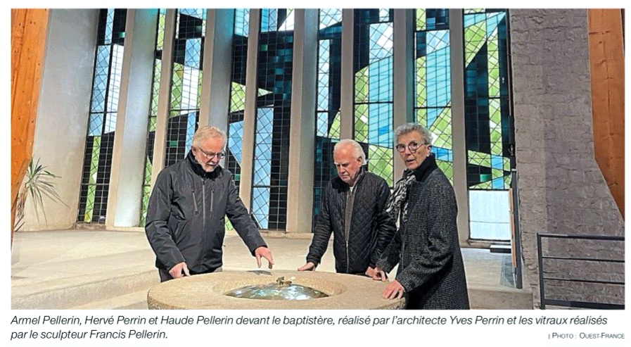 - The church of Saint Yves represented a manifesto of Francis Pellerin’s aesthetic and spiritual approach: it was the reason Suzanne Pellerin wished for her husband’s funeral to be held there in 1998. At the time of its construction, Pellerin was heavily influenced by the Russian avant-garde. He was a keen reader of the review L’Art Sacré, edited by Father Couturier, as well as the reviews Art d’aujourd’hui and Architecture d’aujourd’hui. Although his home was in Rennes, he still had his atelier on rue du Moulin-de-Beurre (present-day rue du Texel) in Paris’s 14th arrondissement, neighbouring those of Émile Gilioli and Ossip Zadkine. At the Villa Medici he had spent time with well-known architects. He was familiar with Notre-Dame du Haut (Ronchamp) and the priory of Sainte-Marie de La Tourette (Éveux), two major works by Le Corbusier. It was therefore in a spirit of a synthesis of art forms, shared by Yves Perrin, that he created a “climate of shapes, signs and colours conducive to prayer and meditation”.